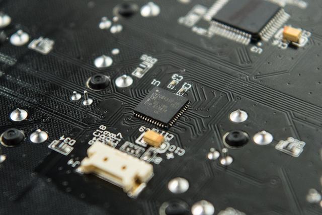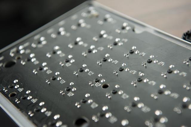 下面来看看PCB细节,先来看看焊接细节,能够看到轴体焊接仍是蛮饱和的,话说目前国产机械键盘的制制工艺曾经相当成熟了,大部门流程都是从动化处置,元器件焊接完满也是理所当然。