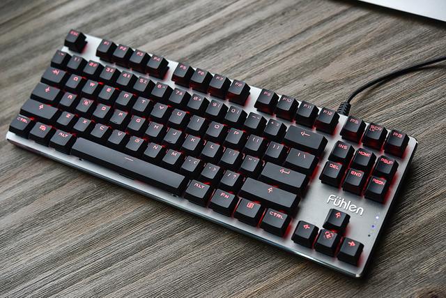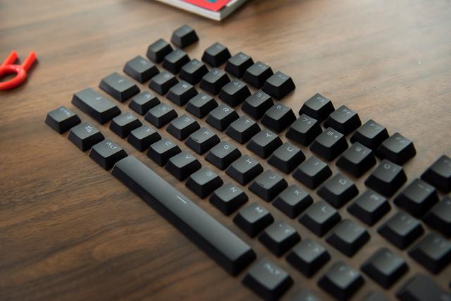 我入手的是富勒G87机械键盘,诚恳说这个价钱能入手Cherry+背光的键盘几多有点不科学,到底这把富勒G87机械键盘狐狸里面卖的是什么药?间接拆开不就晓得了么!键盘到手后拆解走起,一路来看看这把键盘到底怎样吧~拆键盘起首是拔键帽,这把富勒G87采用了常见的ABS键帽,这种材质多见于背光键盘,通过双色注塑工艺使键帽透光该当是目前最成熟的方案。