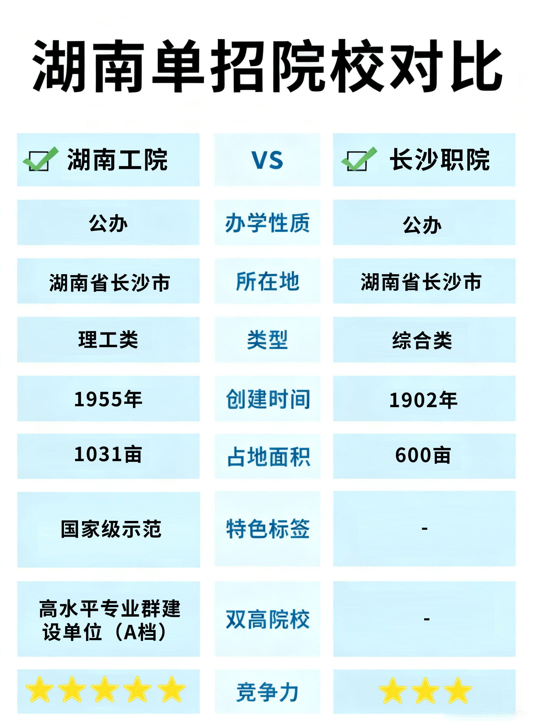 湖南公办高职单招对比:湖南工院取长沙职院焦